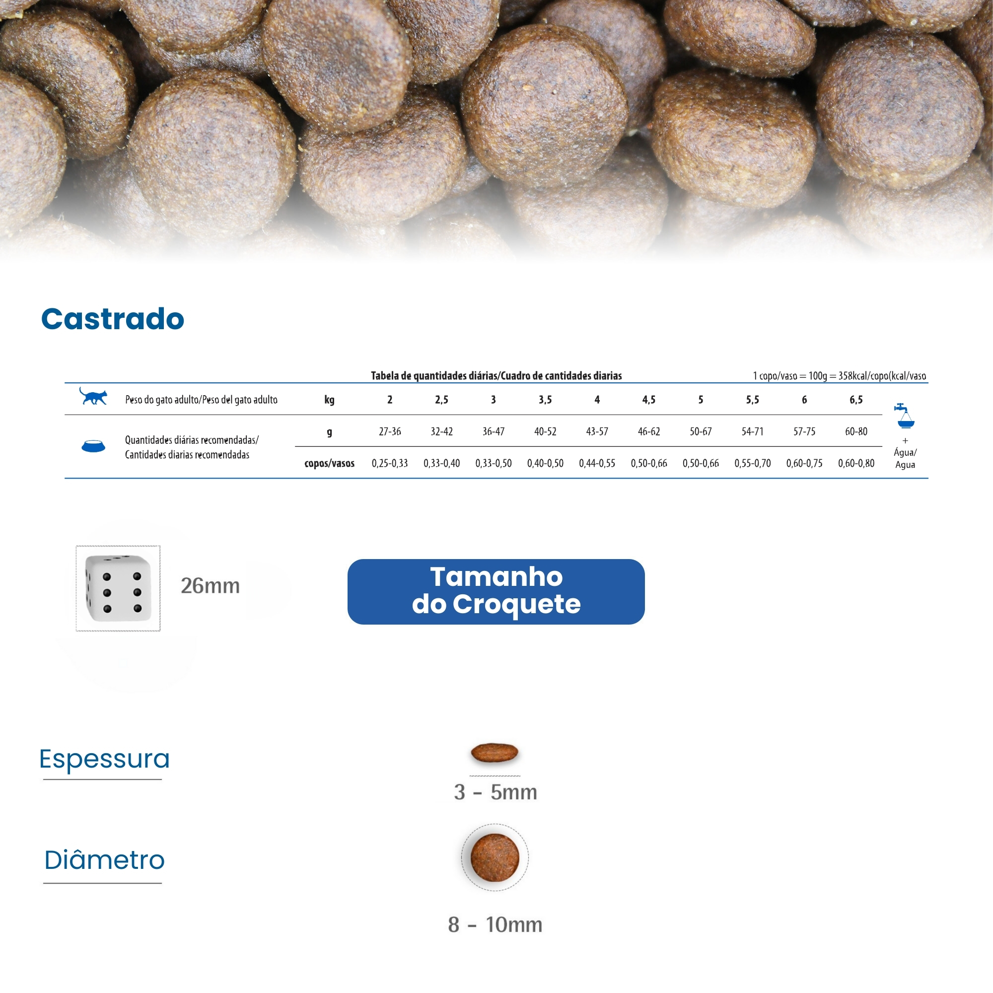 Servir a ração seca, conforme a tabela de consumo indicada na embalagem ou conforme orientação do médico-veterinário.