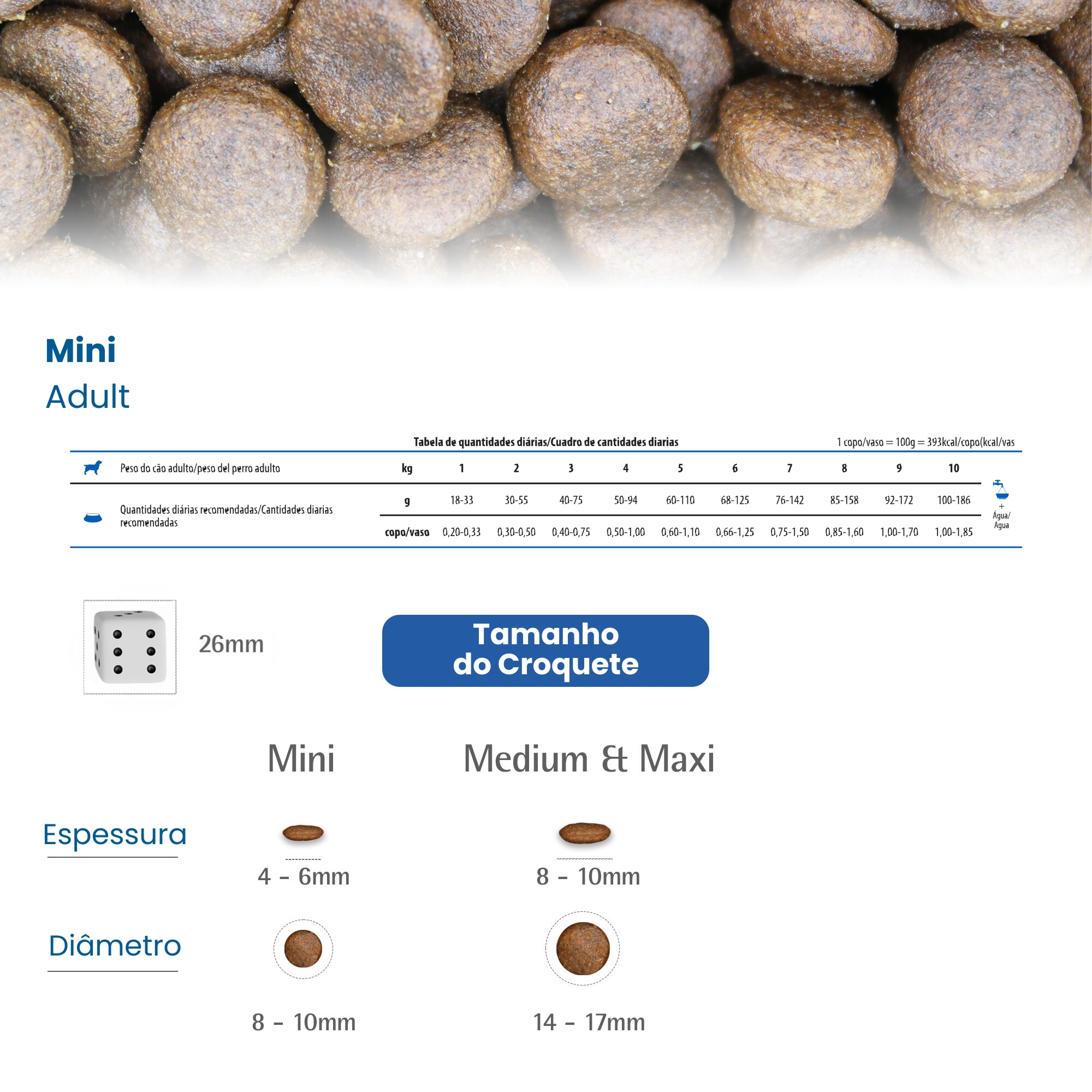 Servir a ração seca, conforme a tabela de consumo indicada na embalagem ou conforme orientação do médico-veterinário.